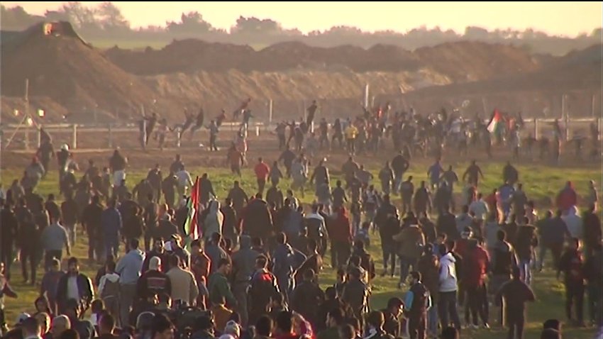 Environ 12.000 Palestiniens ont pris part à des manifestations et des heurts en différents points de la frontière, a dit un porte-parole de l’armée d’occupation israélienne.