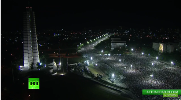 « Vive la Révolution! », « Fidel, Fidel! », scandaient des milliers de Cubains de tous âges peu avant le début de la cérémonie vers 19H00 (00H00 GMT) devant le mémorial du héros de l’indépendance José Marti sur la place de la Révolution, au centre de la capitale.