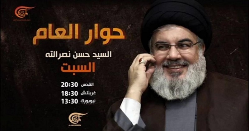 Dans la soirée du dimanche, la télévision libanaise a diffusé un clip publicitaire de l’interview, intitulé : « Le secrétaire général du Hezbollah brise son silence qui effraie l’occupation. »