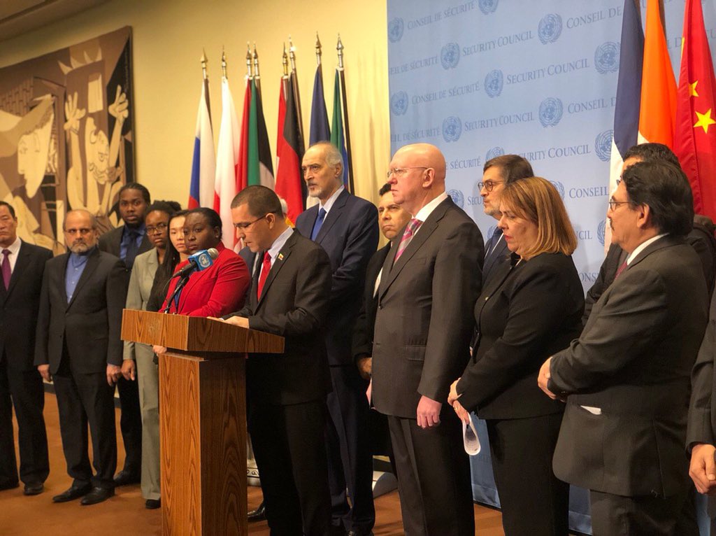 «Nous annonçons aujourd’hui la formation d’un groupe important de pays membres de l’Onu préoccupés par le respect des principes de la communauté internationale. Nous partageons les mêmes intérêts et défendons les mêmes principes. Nous pensons que ces principes sont violés, mettant en péril le droit à la paix et à la souveraineté de nos peuples, le droit au développement et le plein exercice des droits de l’Homme, le droit à la vie», a fait savoir Jorge Arreaza lors d’un point de presse tenue ce jeudi 14 février au siège de l’Onu.