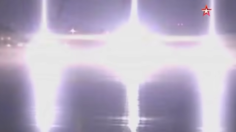 Une lumière aveuglante jaillit d’un navire près de Saint-Pétersbourg, lequel teste une nouvelle arme équipant des navires russes, le Filin P5-42, comme on peut le voir dans une vidéo diffusée par la chaîne télévisée Zvezda.