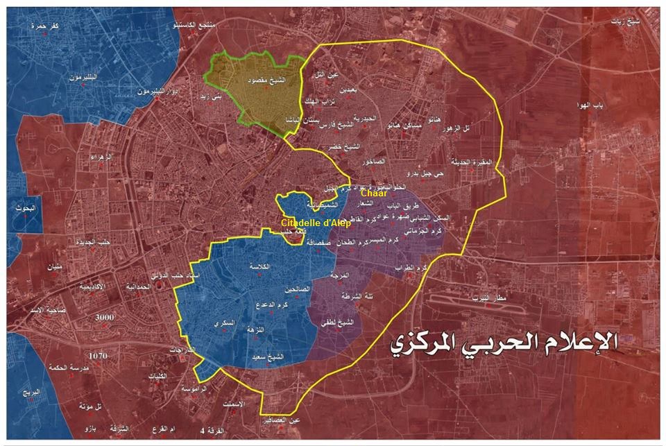 « Cette avancée devrait permettre la rencontre, pour la première fois depuis 2012 entre les militaires syriens retranchés dans la citadelle et ceux qui avancent », a indiqué al-Mayadeen. Sachant que la citadelle d’Alep a résisté à des centaines d’attaques lancées par les rebelles et n’est jamais tombée entre leurs mains.