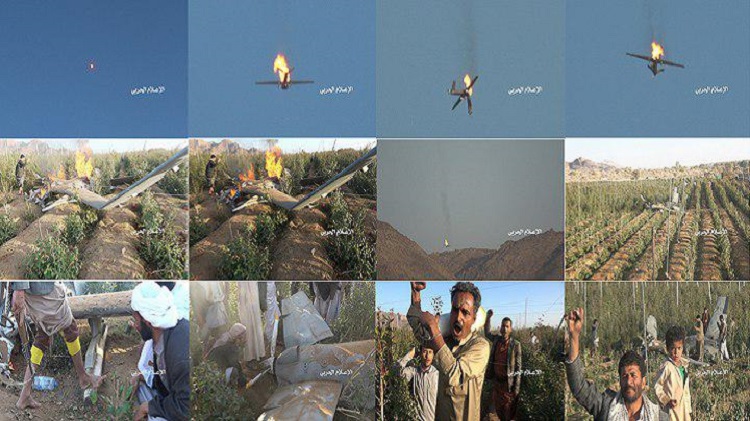 Les images montrent le drone en feu en train de tomber dans une ferme du martyr Saleh Sammad (un dirigeant yéménite assassiné par un raid de la coalition saoudienne).