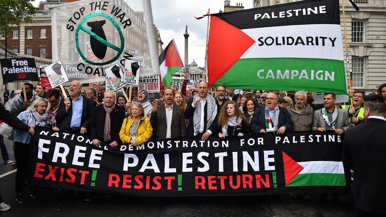 Des milliers de personnes ont défilé dans le centre de Londres le 11 mai pour une «Manifestation nationale pour la Palestine», à laquelle participait notamment Ahed Tamimi, jeune fille devenue symbole de la résistance palestinienne.