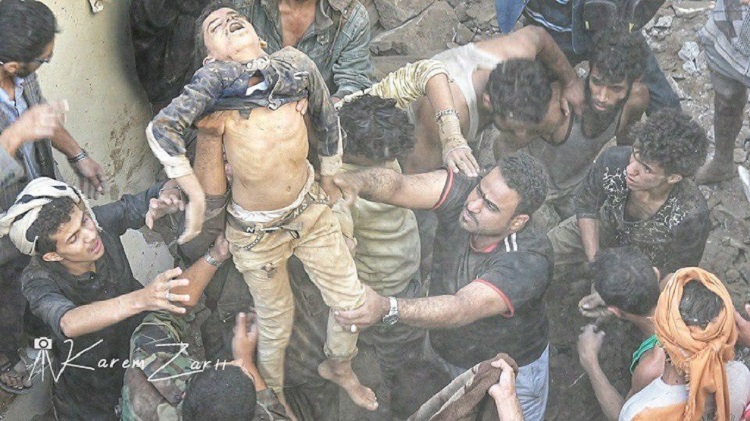 Selon le correspondant de la télévision yéménite AlMasirah, plusieurs victimes ont été ensevelies sous les décombres des bâtiments détruits.