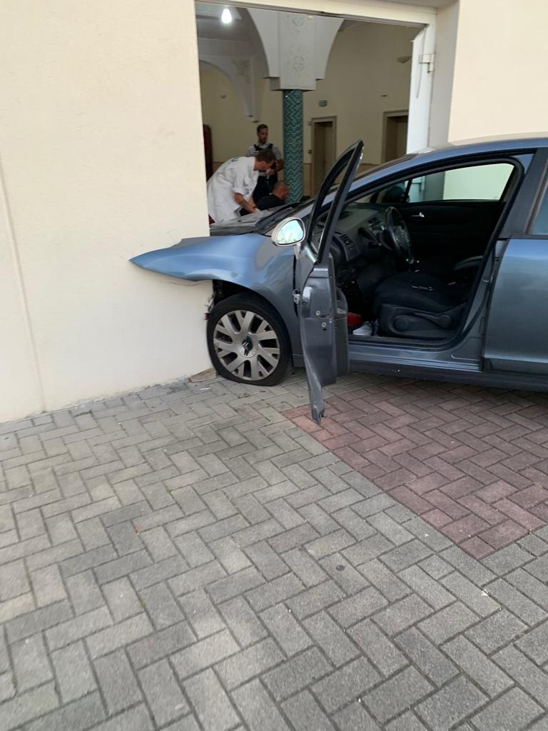 Le véhicule a défoncé le portail de la mosquée avant de s’encastrer contre un mur du bâtiment, selon le quotidien.