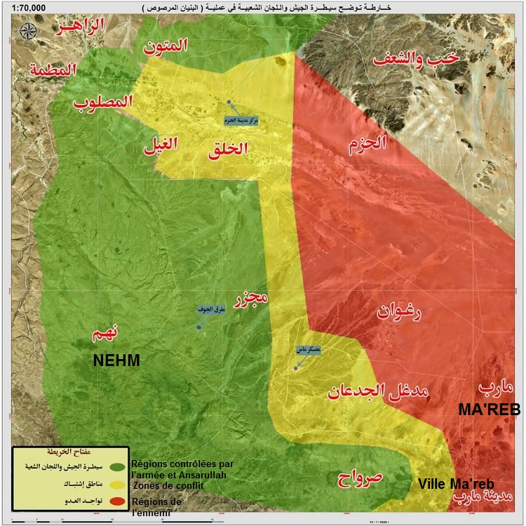 Selon lui, ces forces ont par la suite poursuivi leur progression en direction de la ville de Ma’reb , libérant sur leur chemin plusieurs gouvernorats dans les deux provinces de Ma’reb et al-Jawf, sur une superficie de 2500 km2 .