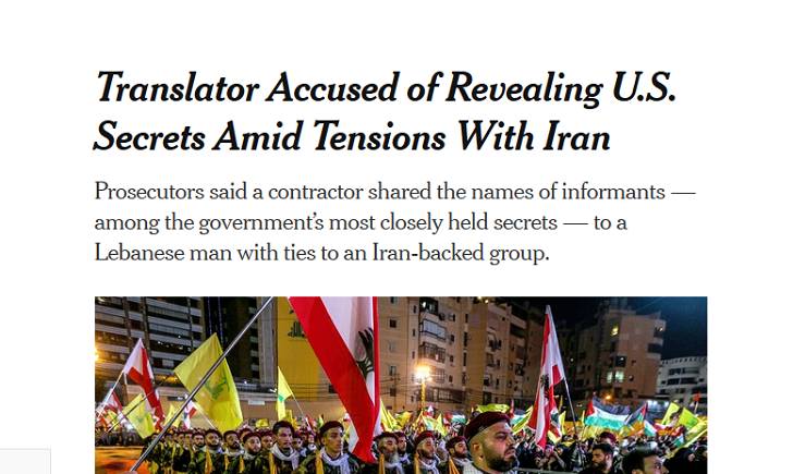Une traductrice travaillant pour le compte de l’armée américaine a été accusée d’avoir divulgué des informations pour le Hezbollah, a révélé le New York Times.