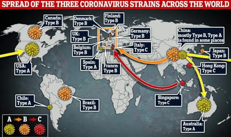 Or il s’avère que le type A a été le plus fréquemment identifié chez les patients infectés aux États-Unis et en Australie et non pas en Chine comme cela aurait dû l’être, étant donné qu’elle a été le foyer de l’épidémie.
