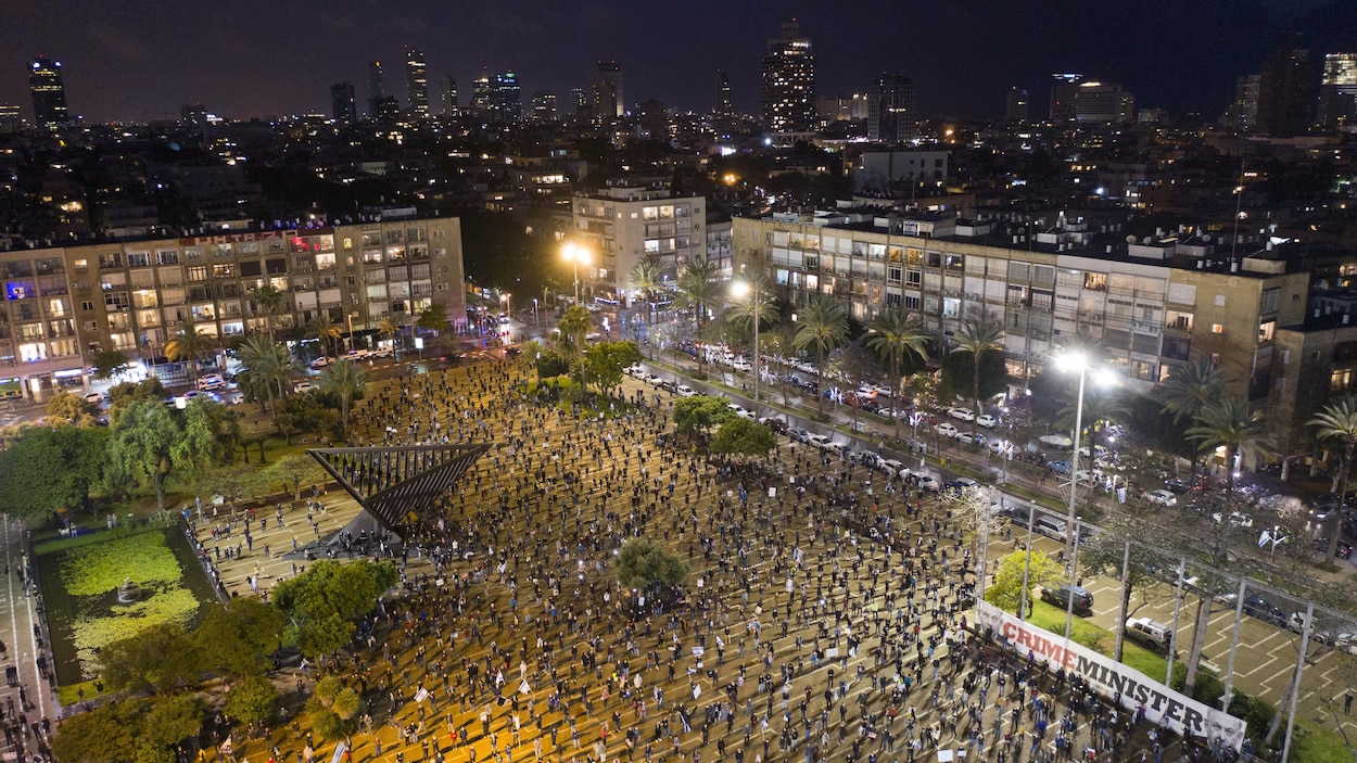Des milliers d’Israéliens ont manifesté samedi soir à Tel-Aviv, en respectant les mesures de distanciation sociale, contre l’accord conclu entre le Premier ministre Benjamin Netanyahu et son ex-rival Benny Gantz et la formation d’un gouvernement qui menace, selon eux, la démocratie.