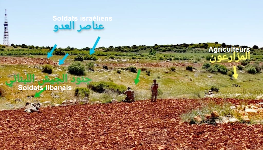 « Les militaires de l’armée libanaise se sont mobilisés face à une force sioniste ennemie qui a pris position à proximité de la clôture technique et qui avait pointé ses armes en direction des agriculteurs qui plantaient du tabac à Khallat al-Gamikat, dans les abords du village frontalier de Aytaroune », a indiqué le correspondant de la télévision al-Manar au sud du Liban Ali Choeb.