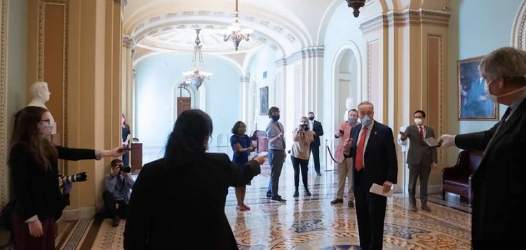 Son homologue démocrate, Chuck Schumer, a invité ses collègues à se préparer à « une des sessions les plus étranges du Sénat américain dans l’histoire moderne », où les parlementaires ne se serreraient pas la main et ne se regrouperaient pas ensemble.