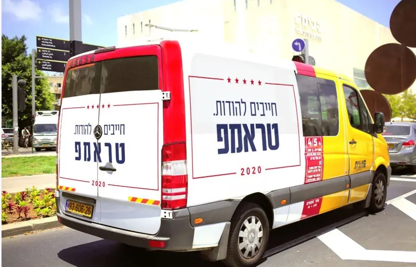 Depuis jeudi matin, les taxis collectifs sillonnant les rues de Tel-Aviv dans l’entité sioniste arborent des affiches scandant en hébreu « Nous devons remercier Trump », rapporte le quotidien Jerusalem Post.
