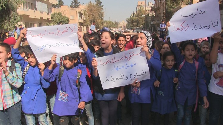 Interrogés par la télévision libanaise d’information al-Mayadeen Tv, des élèves ont expliqué comment en raison de la fermeture des écoles dans les régions soumises aux FDS, les élèves sont obligés de traverser de longues distances pour parvenir aux écoles publiques dans les régions encore contrôlées par les autorités syriennes .