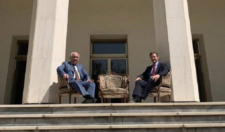 Diffusée sur Twitter mercredi par l’ambassade russe, la photo montre l’ambassadeur Levan Dzhagaryan posant avec son homologue britannique Simon Shercliff sur les marches de l’ambassade russe dans la capitale iranienne.