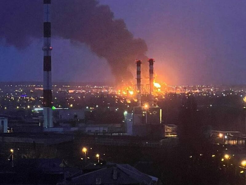 Des images partagées sur les réseaux sociaux semblaient montrer des hélicoptères s’éloignant du site en feu. Le gouvernement ukrainien n’a pas encore revendiqué cette attaque.