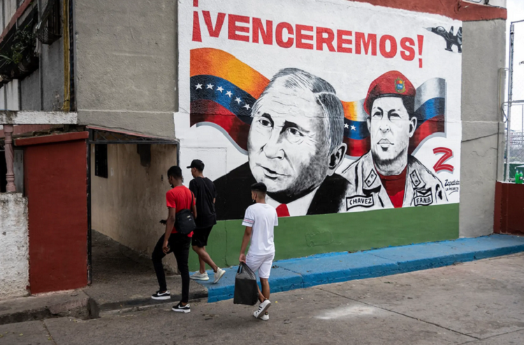 Un Vladimir Poutine souriant à côté du défunt Hugo Chavez et, dans un coin, le « Z » de soutien à l’armée russe: des collectifs de gauche ont peint une fresque dans un quartier de Caracas, bastion chaviste, en soutien à l’invasion russe en Ukraine.