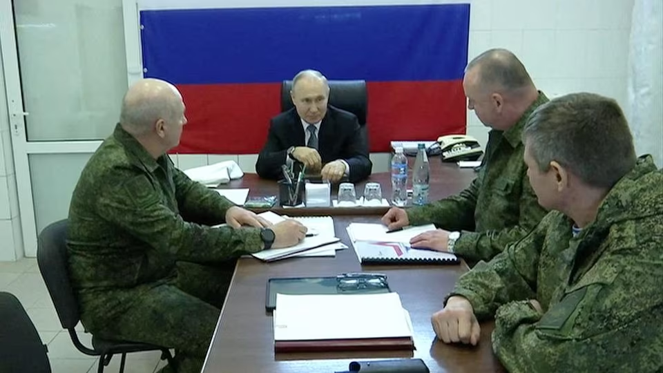 Poutine s’y est entretenu avec le commandant des forces aéroportées russes, le général Mikhaïl Teplinski, et d’autres hauts responsables militaires pour évoquer la situation dans les régions de Kherson et de Zaporijjia.