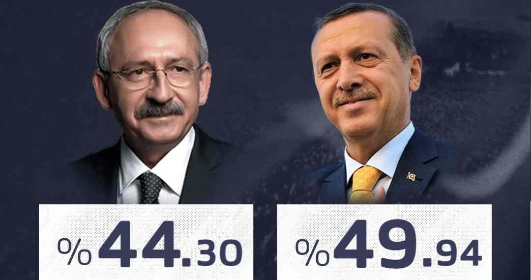 Le dernier comptage, portant sur près de 99,9% des urnes, accorde 49,5% des suffrages au chef de l’Etat, au pouvoir depuis vingt ans, contre 44,9% à son rival social-démocrate Kemal Kiliçdaroglu.