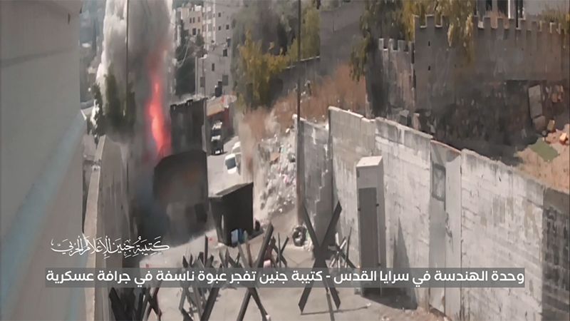 « Des images sur l’explosion par l’Unité de génie d’un engin piégé de type Tarek-1 contre un bulldozer dans le cadre de la bataille héroïque Douleur de Jénine », a indiqué samedi 8 juillet la Brigade sur sa page Telegram.