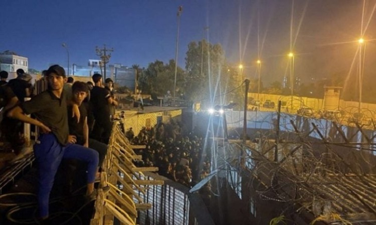 Les forces anti-émeutes irakiennes ont utilisé, des canons à eau pour éloigner les manifestants. Plusieurs camions étaient sur le site pour éteindre l’incendie.