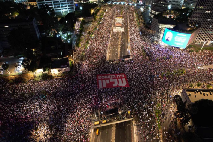 Outre la ville côtière de Tel-Aviv, où des dizaines de milliers de personnes sont descendues dans la rue, des rassemblements similaires ont eu lieu dans des dizaines d’autres endroits des territoires occupés, notamment Haïfa, Beer Sheba, Modiin, Herzilya, la ville occupée d’AlQuds et dans d’autres villes.