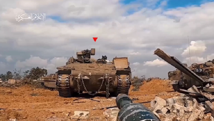 Les images montrent entre autres des tirs d’obus al-Yassin 105 contre des chars et véhicules israéliens dans plusieurs régions ainsi que des tirs d’obus et des tirs de mitrailleuses contre une force d’infanterie israélienne dans une école de Khan Younes.