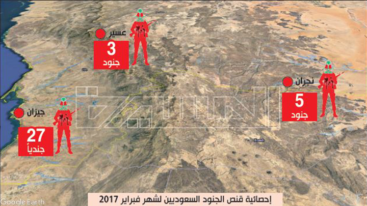 Et d’ajouter : 33 soldats saoudiens ont été tués par des tireurs embusqués durant le mois de Janvier. Alors qu’en Novembre et Décembre 2016, le chiffre s’élevait à 93 soldats saoudiens tués.