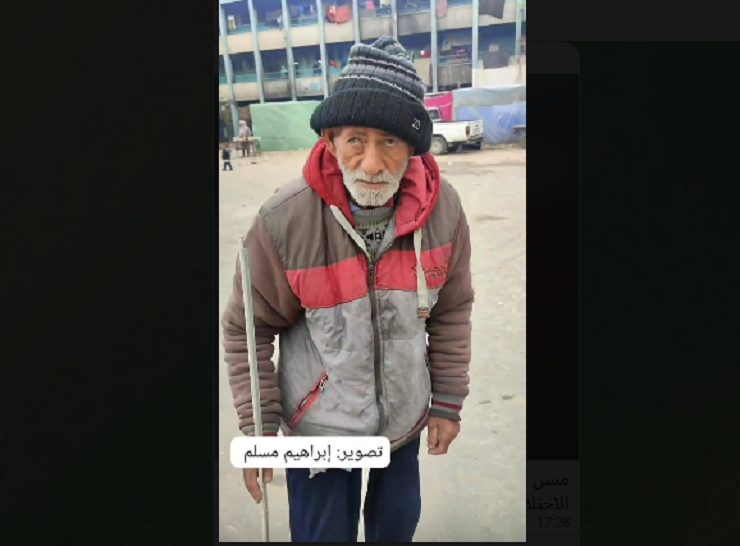 Le témoignage d’un vieux palestinien du nord de Gaza, manifestement amaigri, ayant pris refuse dans une école, avec sa famille.