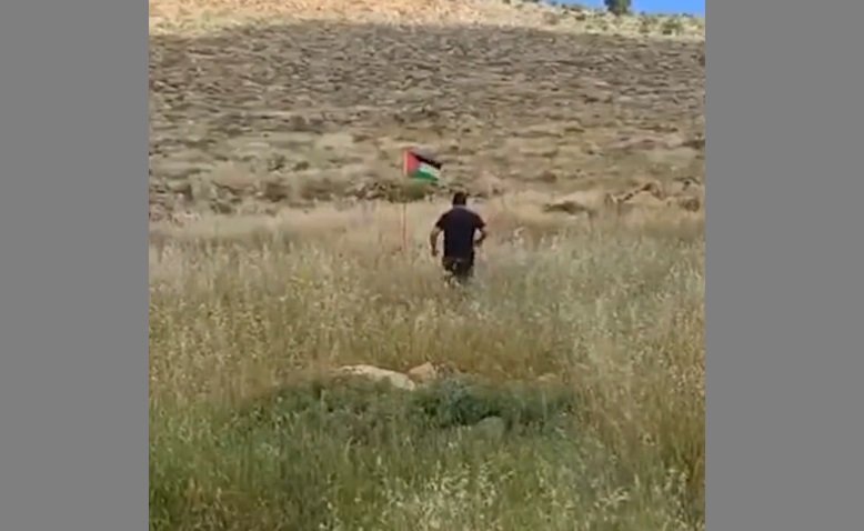 Une vidéo diffusée sur les réseaux sociaux montre le moment où un colon avançait vers le drapeau palestinien près de la colonie de Kochav Hashahar, à l’est de Ramallah, et dès qu’il a tenté de l’enlever, un engin explosif a explosé le blessant sur le coup.