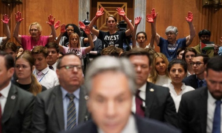 Le groupe a protesté contre le discours de Blinken devant la commission sénatoriale des relations étrangères sur la diplomatie américaine, les défis mondiaux et la demande de budget 2025.