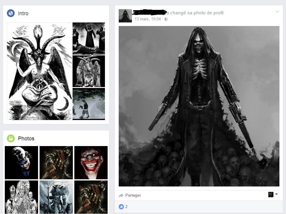 Sur une page Facebook au nom du jeune homme, on retrouve par ailleurs de nombreuses illustrations de personnages armés, d’images gore ou encore de dessins satanistes.