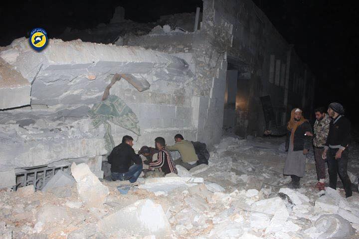 Des images filmées par un correspondant de l’AFP montrent des habitants et des Casques blancs, fouillant les décombres à l’aide de torches et de pelles.
