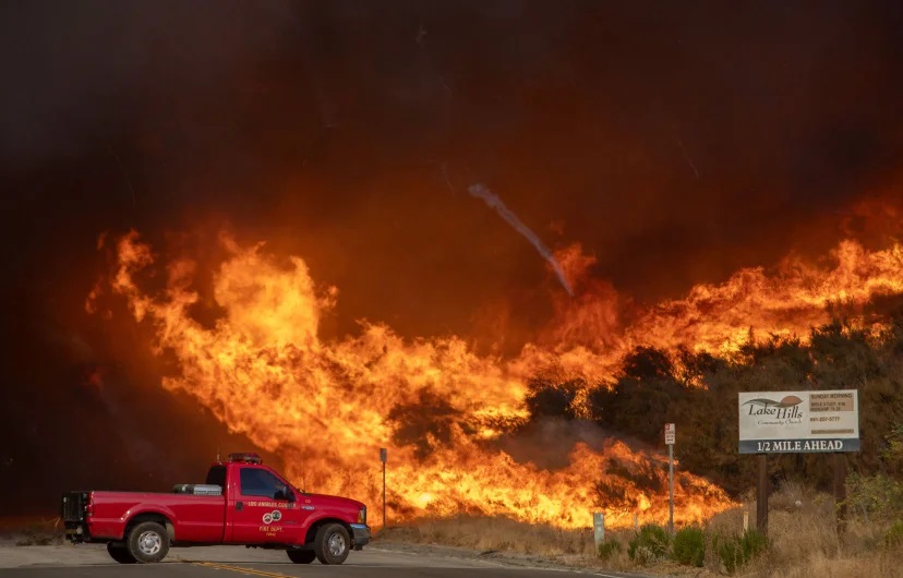 En quelques heures, les flammes ont déjà ravagé plus de 3.800 hectares dans les environs du lac Castaic. Elles sont attisées par les vents chauds et secs de Santa Ana qui continuent de souffler sur la région, poussant un grand nuage de fumée au-dessus du brasier.