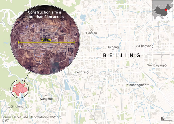 Des images satellite obtenues par le Financial Times et examinées par les services de renseignement américains montrent un chantier de construction de 1 500 acres de surface, à environ 30 km au sud-ouest de Pékin.