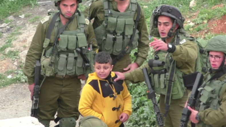 B’Tselem, groupe de défense des droits de l’homme basé à Jérusalem, a posté sur internet une vidéo montrant des soldats israéliens traîner de force un garçon palestinien de huit ans pour qu’il les mène vers la cache de lanceurs de pierres. L’armée affirme que le garçon lui-même était suspecté de jeter des projectiles sur les soldats qui l’ont interpellé.