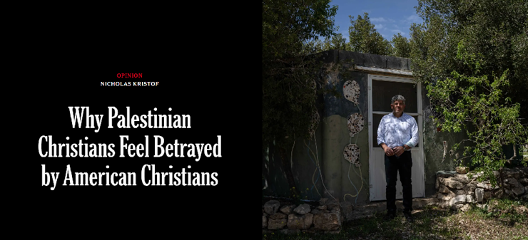 Selon le New York Times, il existe des modèles chrétiens locaux qui adhèrent aux valeurs d’amour et de justice prônées par la Bible, dont le groupe « Tente des Nations » en Cisjordanie, un mouvement chrétien pacifique dont le slogan est : « Nous refusons d’être des ennemis ».