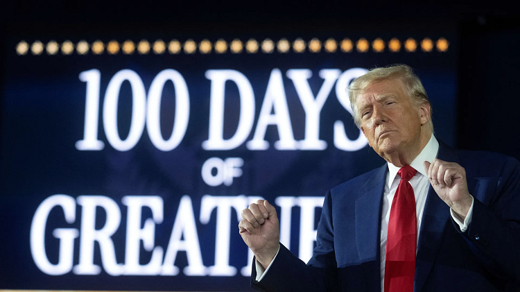 Son retour au pouvoir a été un séisme suivi d’incessantes répliques économiques, diplomatiques, politiques: Donald Trump a célébré, le mardi 29 avril, ses cent jour auprès de partisans plus fervents que jamais, quand l’Amérique, elle, déchante.