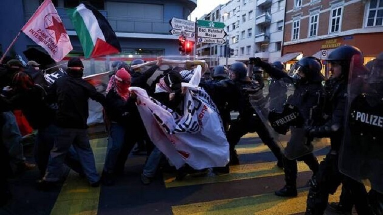 Plusieurs centaines de manifestants se sont rassemblés en marge de la finale de l’Eurovision, le samedi 17 mai 2025 dans la ville suisse de Bâle, pour dénoncer la participation d’Israël, en pleine guerre génocidaire israélienne contre Gaza.