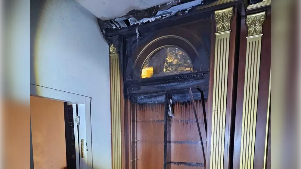 Quelques minutes avant le signalement de l’incendie, la police d’occupation a dit avoir reçu un rapport concernant des croix taguées sur les portes d’un immeuble adjacent à la synagogue.