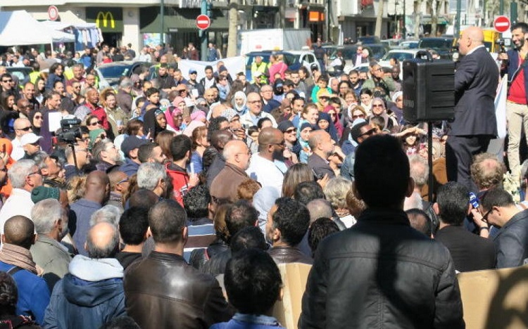 Sur une estrade, devant le parvis de la mairie, fermé à la population et encadré par un important dispositif policier, fidèles et élus locaux se relaient au micro pour demander « un lieu de culte digne ». « On s’est rassemblés pour faire valoir nos droits », lâche Hamid Kazed, le président de l’Union des associations des musulmans de Clichy.