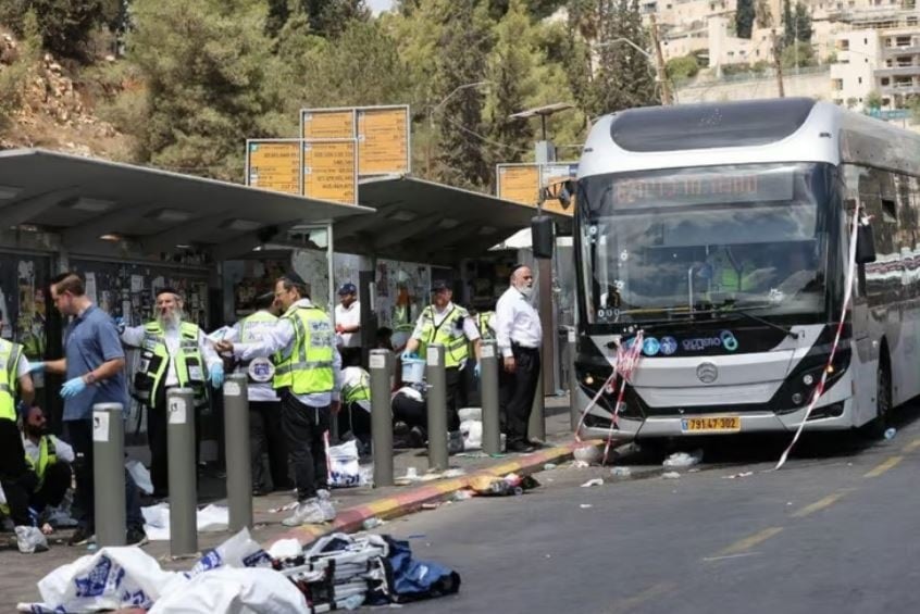 Les médias israéliens ont cité des témoins oculaires affirmant que « l’un des auteurs s’était déguisé en agent de la circulation, était monté à bord d’un bus et avait ouvert le feu à bout portant ».