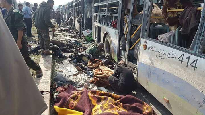 Le bilan de l’attaque terroriste perpétrée samedi contre un convoi d’évacuation à l’ouest d’Alep s’est alourdi.