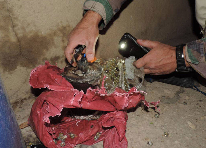 Selon un responsable de sécurité s’exprimant au journal al-Akhbar, la bombe pesait 3kg et contenait de vis et d’autres pièces métalliques.