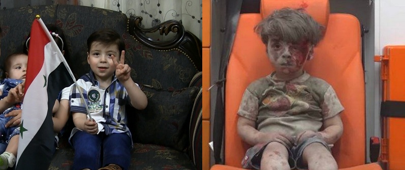 Omrane Daqnich, petit aleppin de trois ans, qui était destiné à devenir l’icône des campagnes médiatiques hostiles au pouvoir syrien est de nouveau sous le flash des caméras.