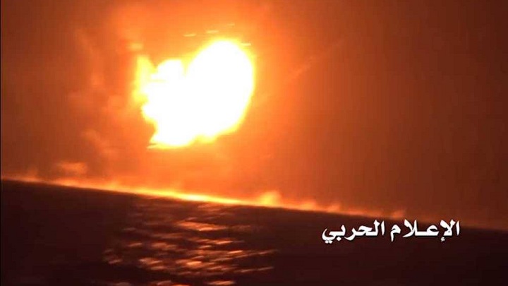 Une source militaire yéménite, citée par la chaine AlMasirah, a précisé que le navire, qui menait des actes hostiles dans les eaux territoriales yéménites, a été touché avec précision par une arme appropriée.