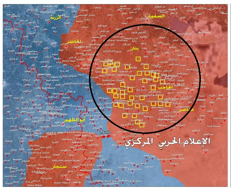 Selon les deux cartes de cette zone située non loin de la province sud-est d’Idleb, la distance charnière entre les deux a été raccourcie de 10 km à 2km.