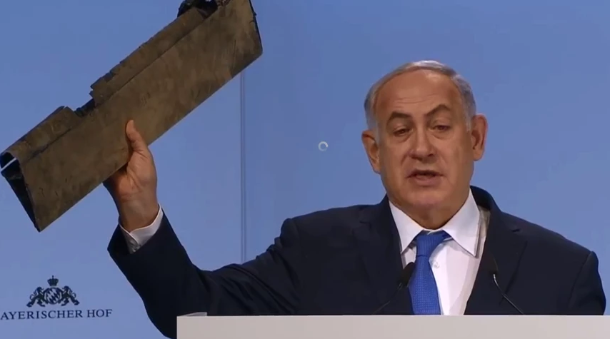 Peu auparavant, Netanyahu a mis en garde l’Iran contre toute agression armée, brandissant un fragment qu’il a prétendu être un morceau d’un drone provenant de Syrie abattu la semaine dernière au-dessus des territoires occupés.