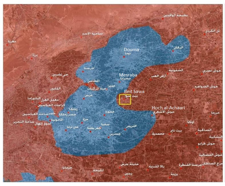 Les choses vont très vite dans la Ghouta orientale, à l’est de Damas. En l’espace de quelques heures, l’armée l’armée syrienne y a conquis les deux localités de Beit Sawa et d’Ashaari, parvenant à la scinder en deux, selon l’Observatoire syrien des droits de l’homme, instance médiatique de l’opposition syrienne pro occidentale.