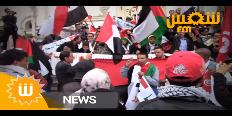 Une foule de tunisiens se sont rassemblés, samedi, devant le théâtre municipal de Tunis pour apporter leur soutien au pouvoir syrien, tout en scandant des slogans hostiles à certains dirigeants arabes.